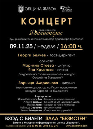 9 ноември, неделяХудожествен ръководител и концертмайстор Красимира Султанова